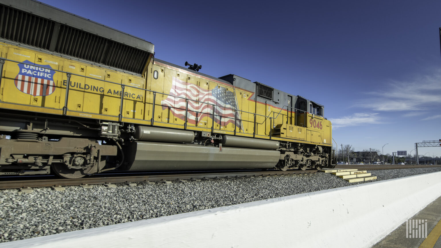 2 April 23, 2021 A Union Pacific train heads to its next destination. (Photo: Jim Allen/FreightWaves) ← Previous Image Next Image →