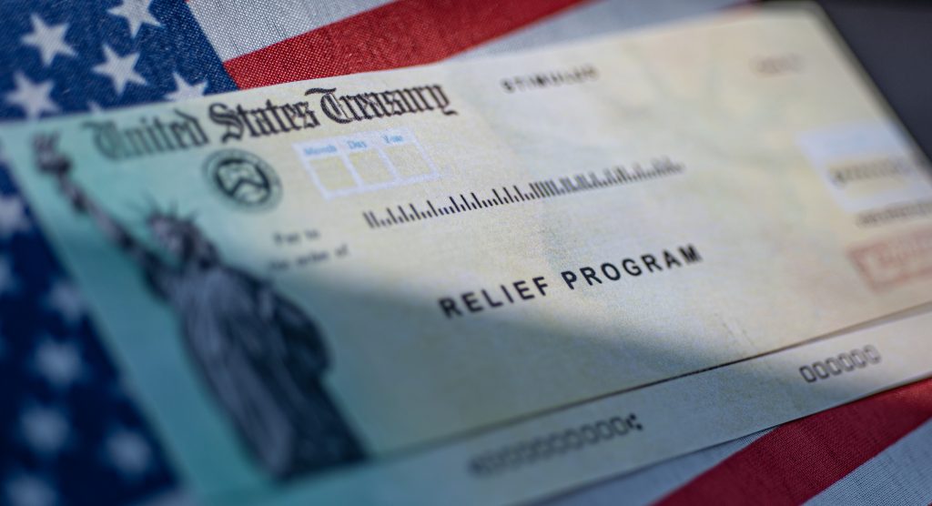 5a March 18, 2021 COVID-19 economic Stimulus check on blurred USA flag and sun light background. Relief program concept. ← Previous Image Next Image →
