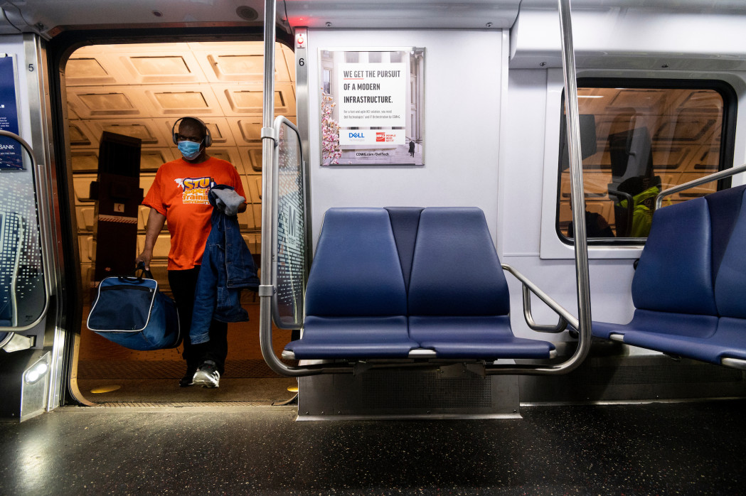 Washington Coronavirus May 14, 2020 UNITED STATES - MAY 1: A passenger wearing a face mask boards the Metro Red Line subway in Washington on May 1, 2020. (Photo By Bill Clark/CQ Roll Call) ← Previous Image Next Image →